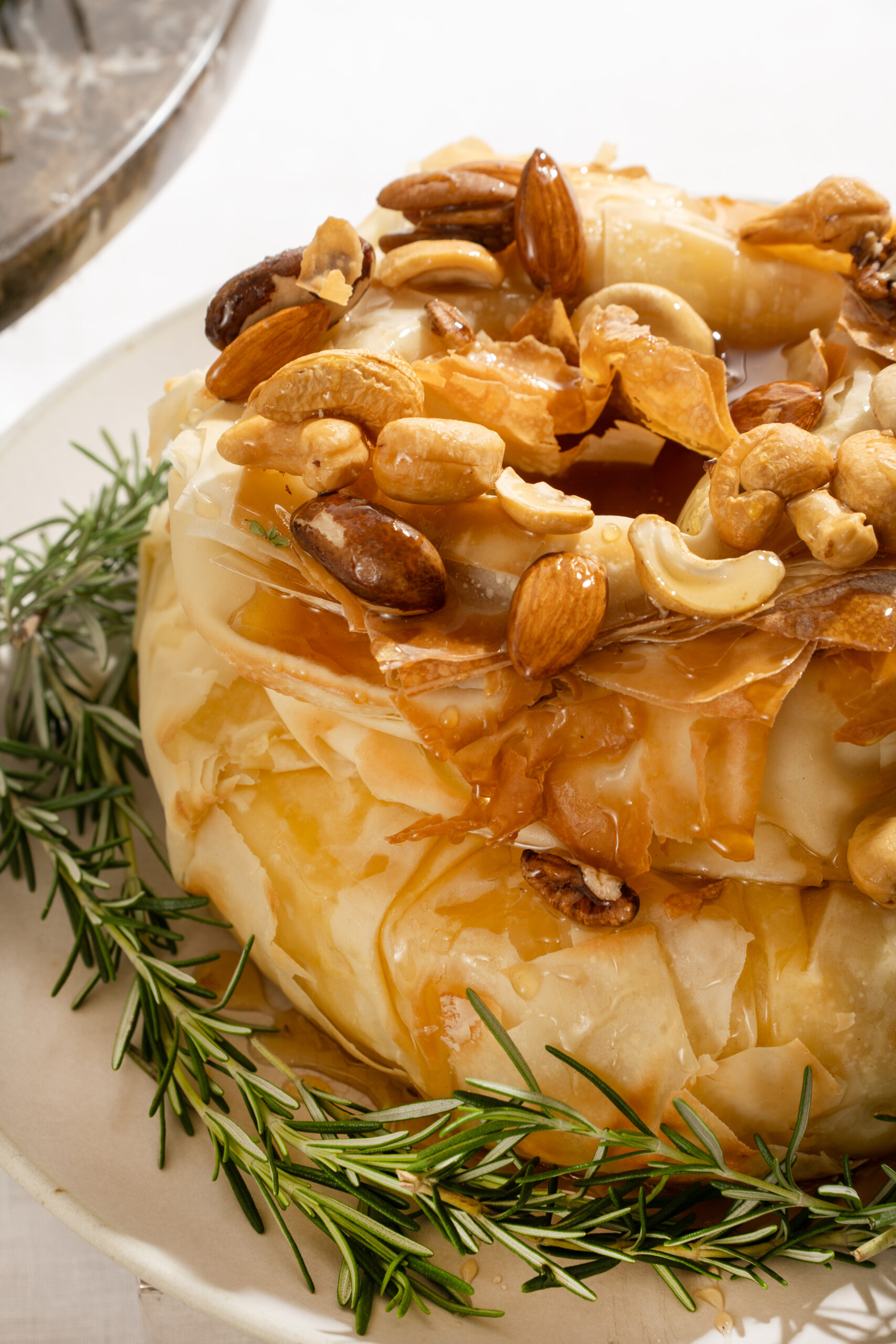 Brie folhado com mel e mix de nuts