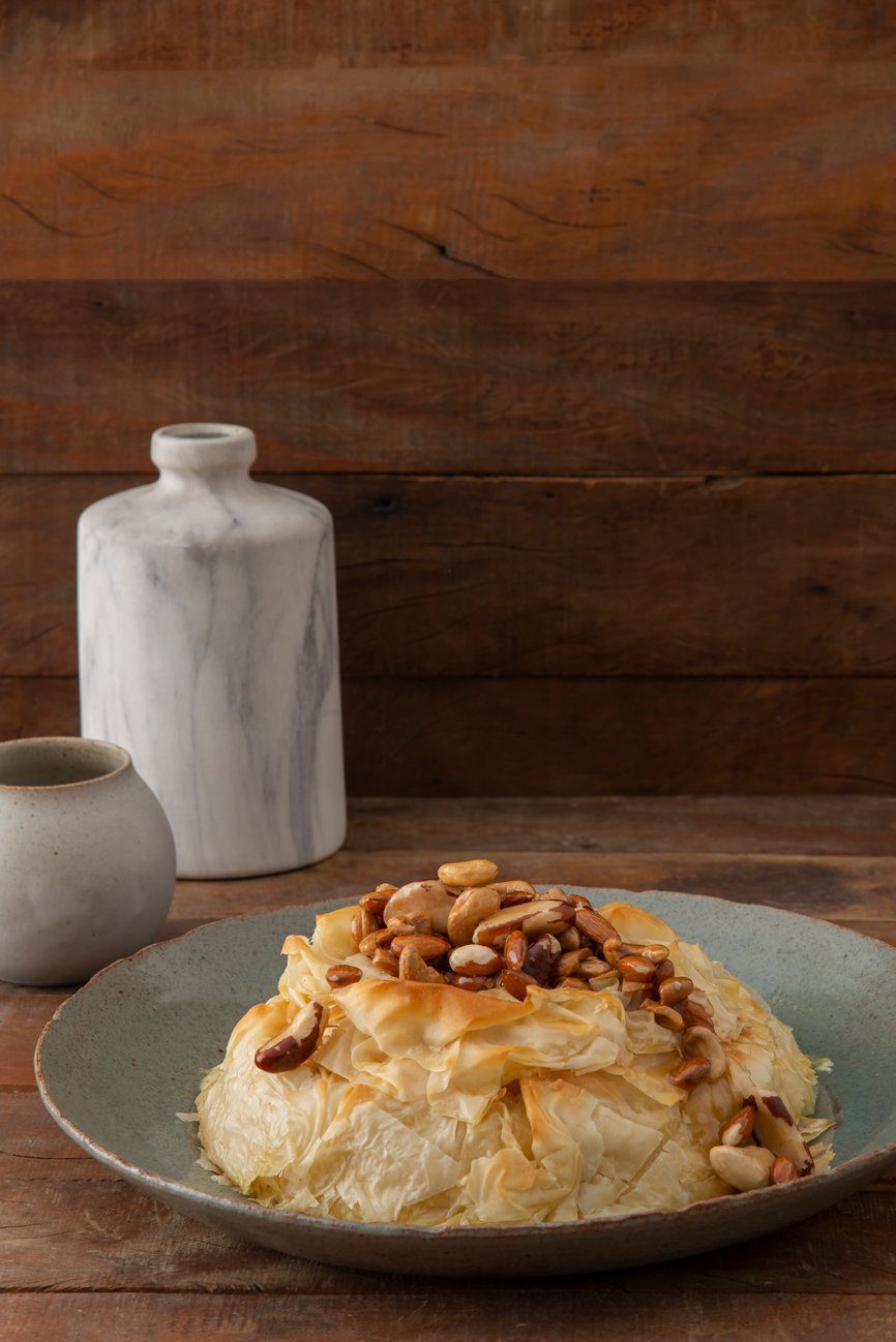 Queijo brie envolto em massa folhada, acompanha mel e mix de nuts. Um best seller presente em quase todos nossas festas.
