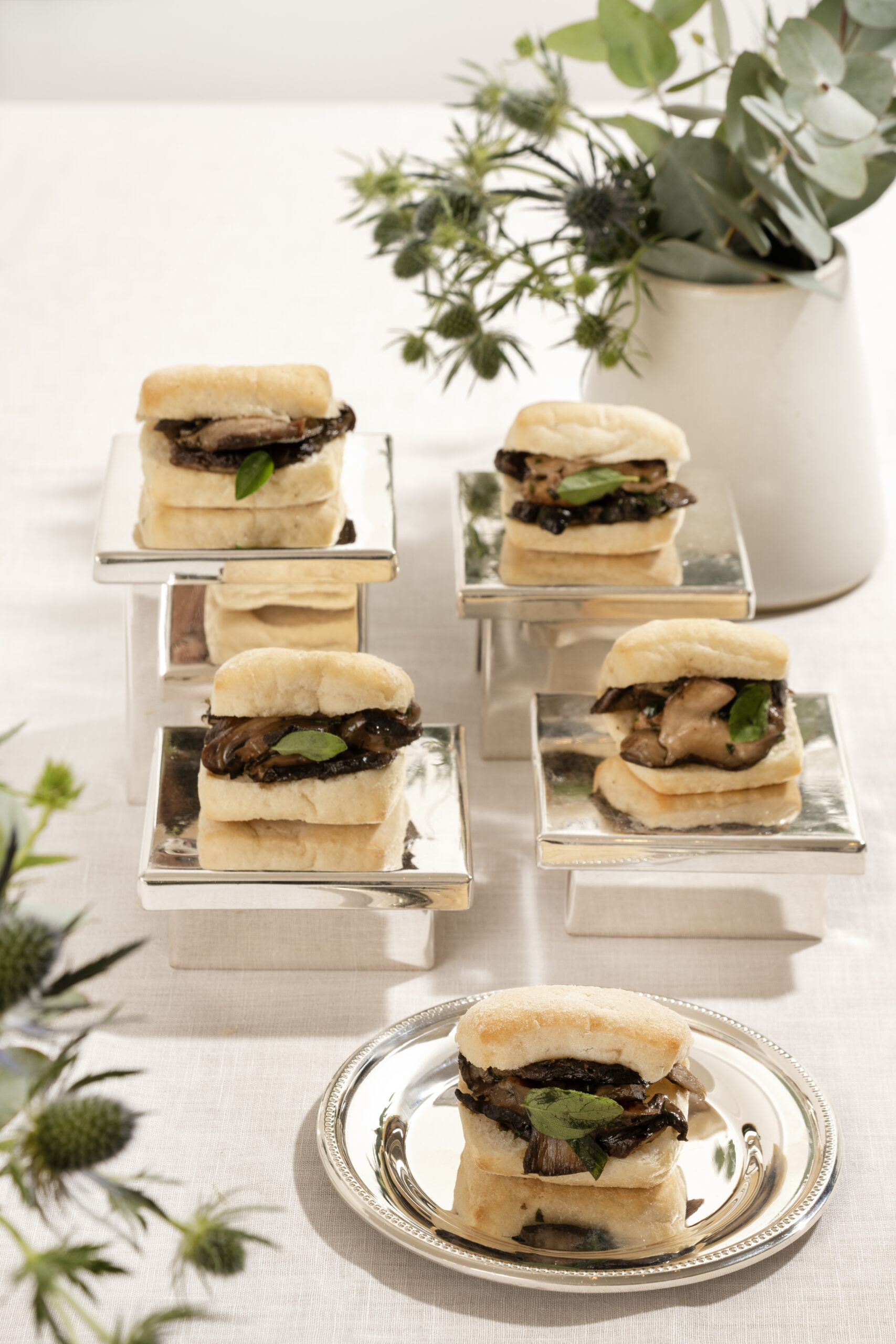 12 unidades de mini ciabatta com cogumelos e manjericão