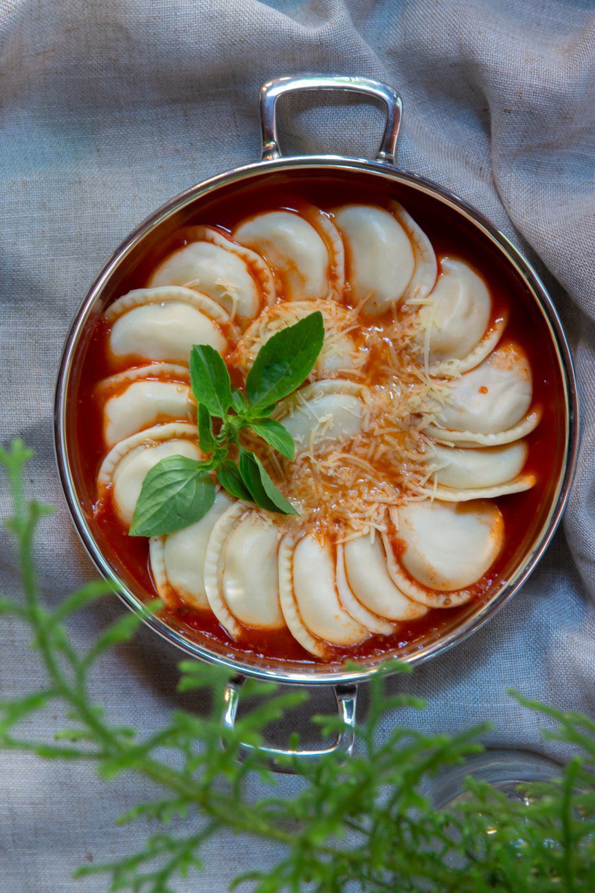 Massa fresca recheada com burrata e toque cítrico de limão siciliano. Sugerimos o molho de tomate, mas você pode escolher o que preferir.