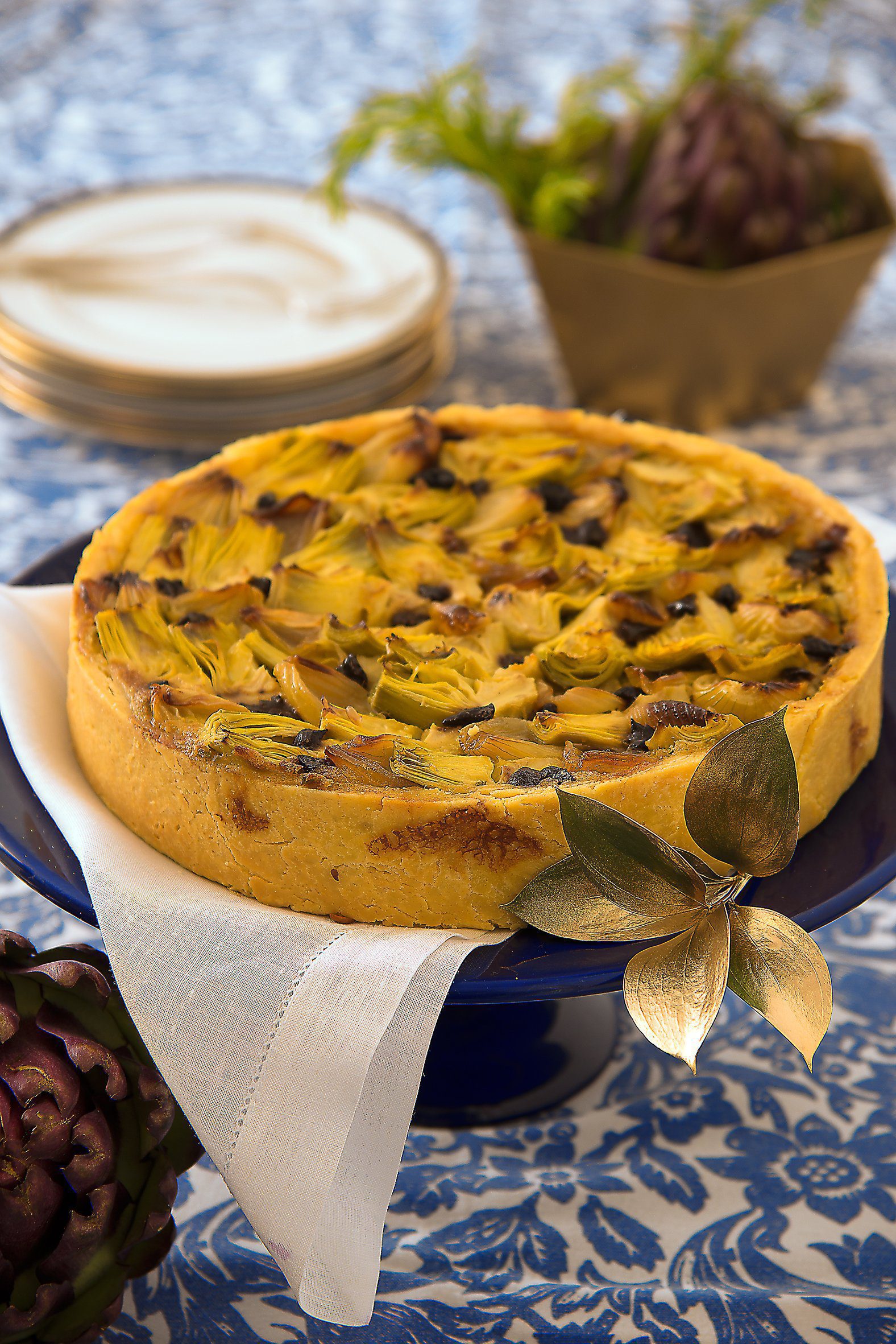 Sofisticada e deliciosa. Recheio de alcachofra e tapenade de azeitonas, em massa amanteigada